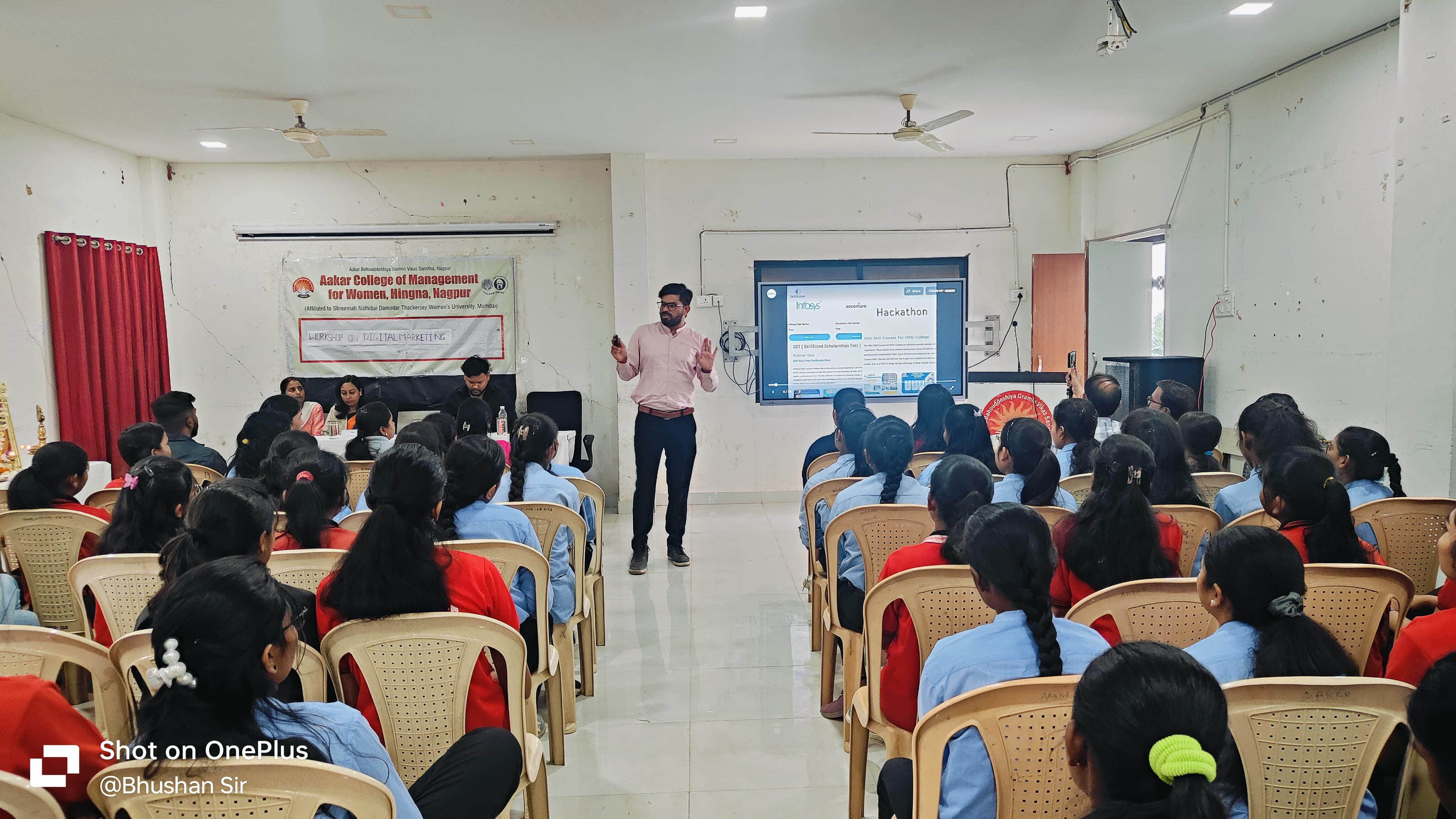 Seminars and workshops are a regular and integral part of the course curriculum at Aakar College of Management For Women. For these purposes, we have a seminar hall enough to accommodate a large number of students, spacious and equipped with all modern technical aids including projector and sound systems. This seminar hall is also used for student meets, guest lectures etc.